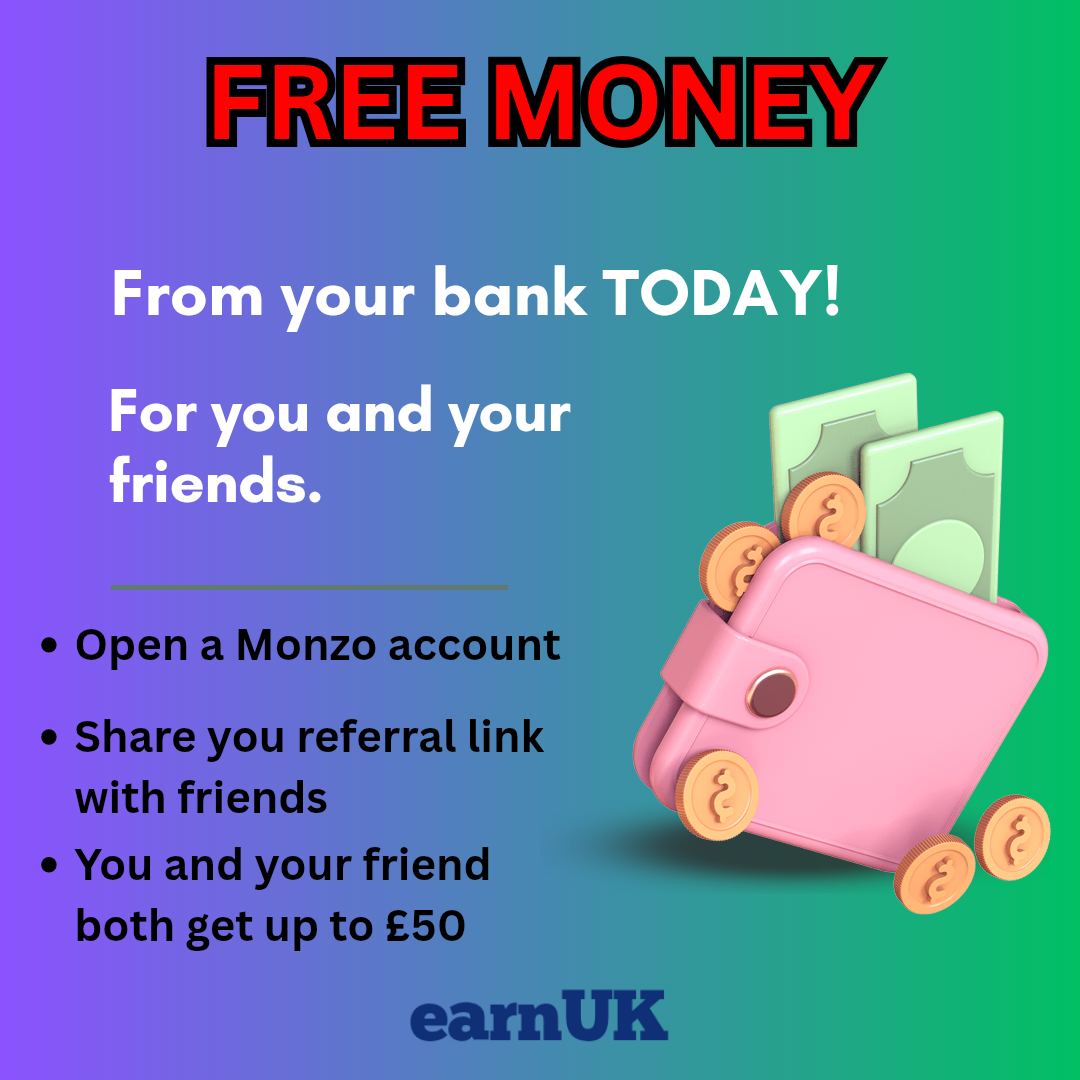 Yep, that’s right. Monzo, the UK’s favourite hot coral bank card, has a referral scheme that rewards you when someone signs up through your link. It’s not going to make you rich overnight (sorry, no early retirement here), but it’s an easy way to earn a little extra cash for things like coffee runs or takeaway nights.
